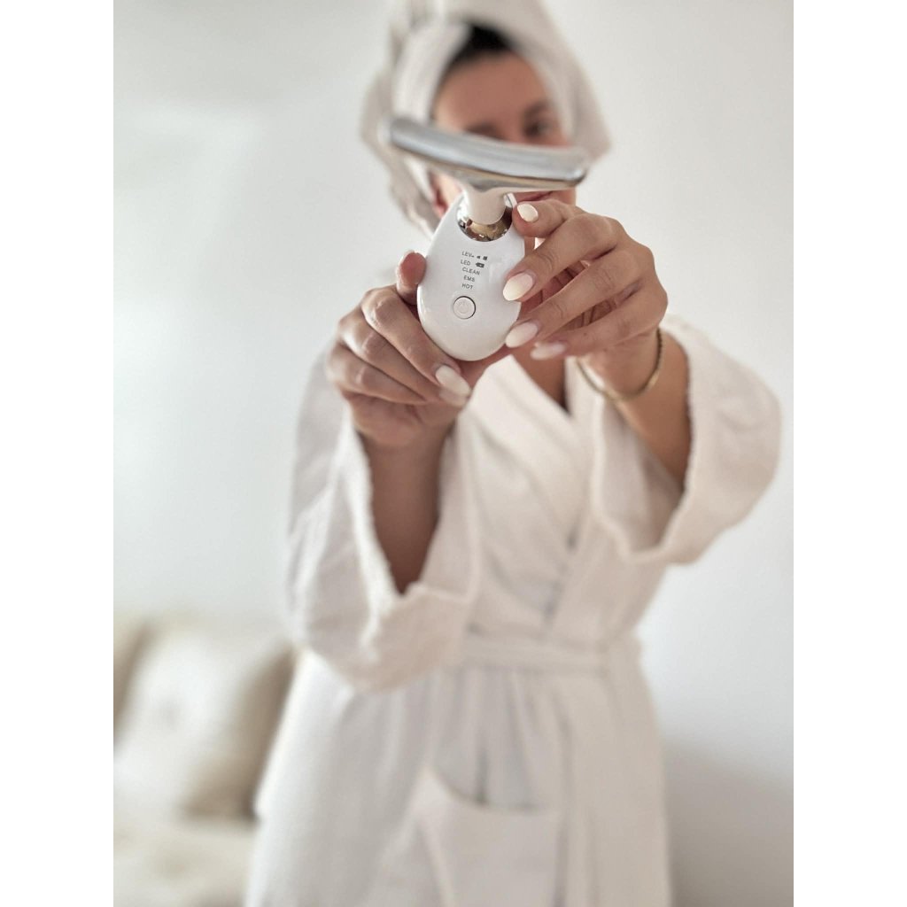 Prístroj pracuje v niekoľkých vrstvách pokožky súčasne – čistí póry, aktivuje bunky, stimuluje svaly a podporuje prirodzenú tvorbu kolagénu.